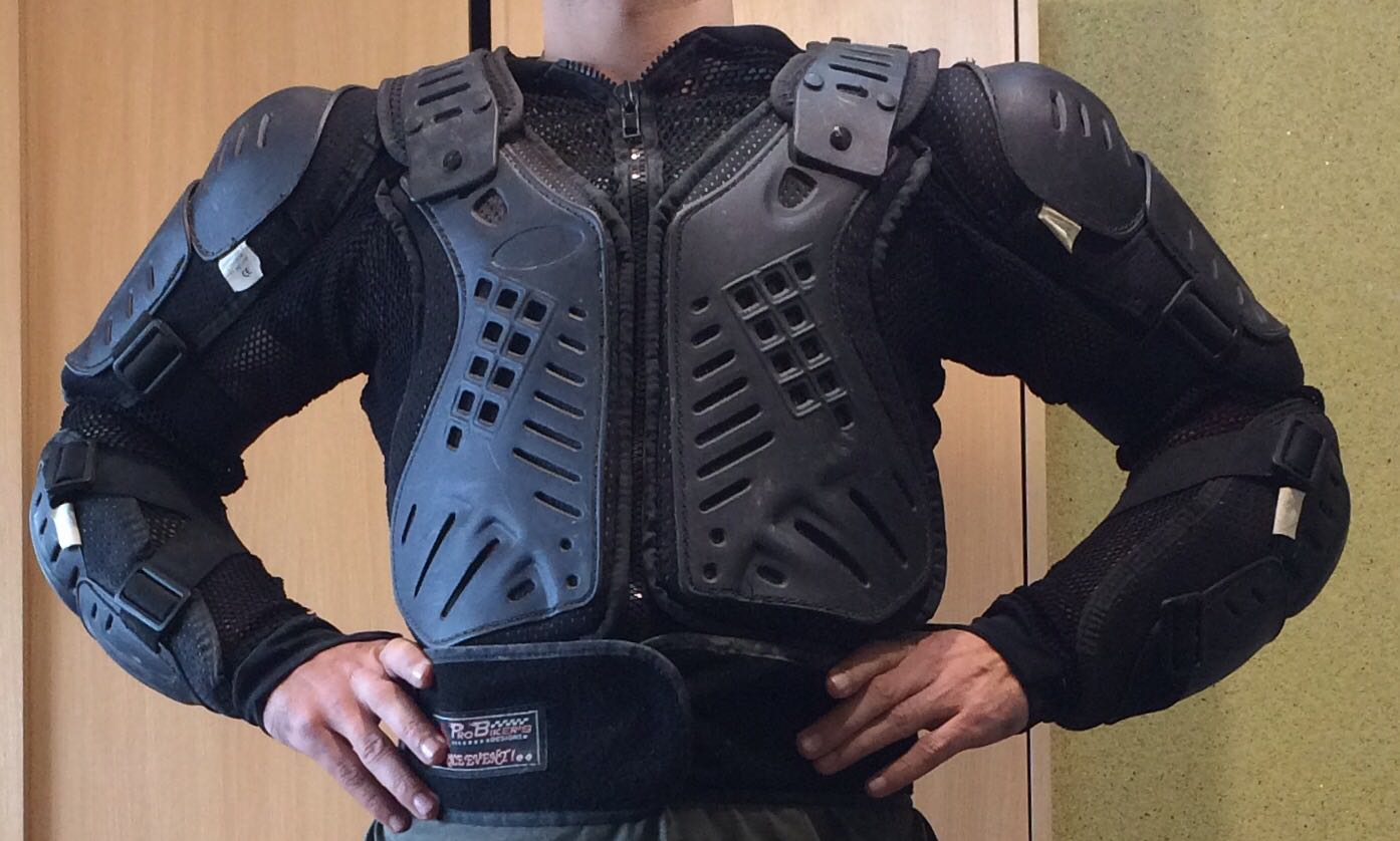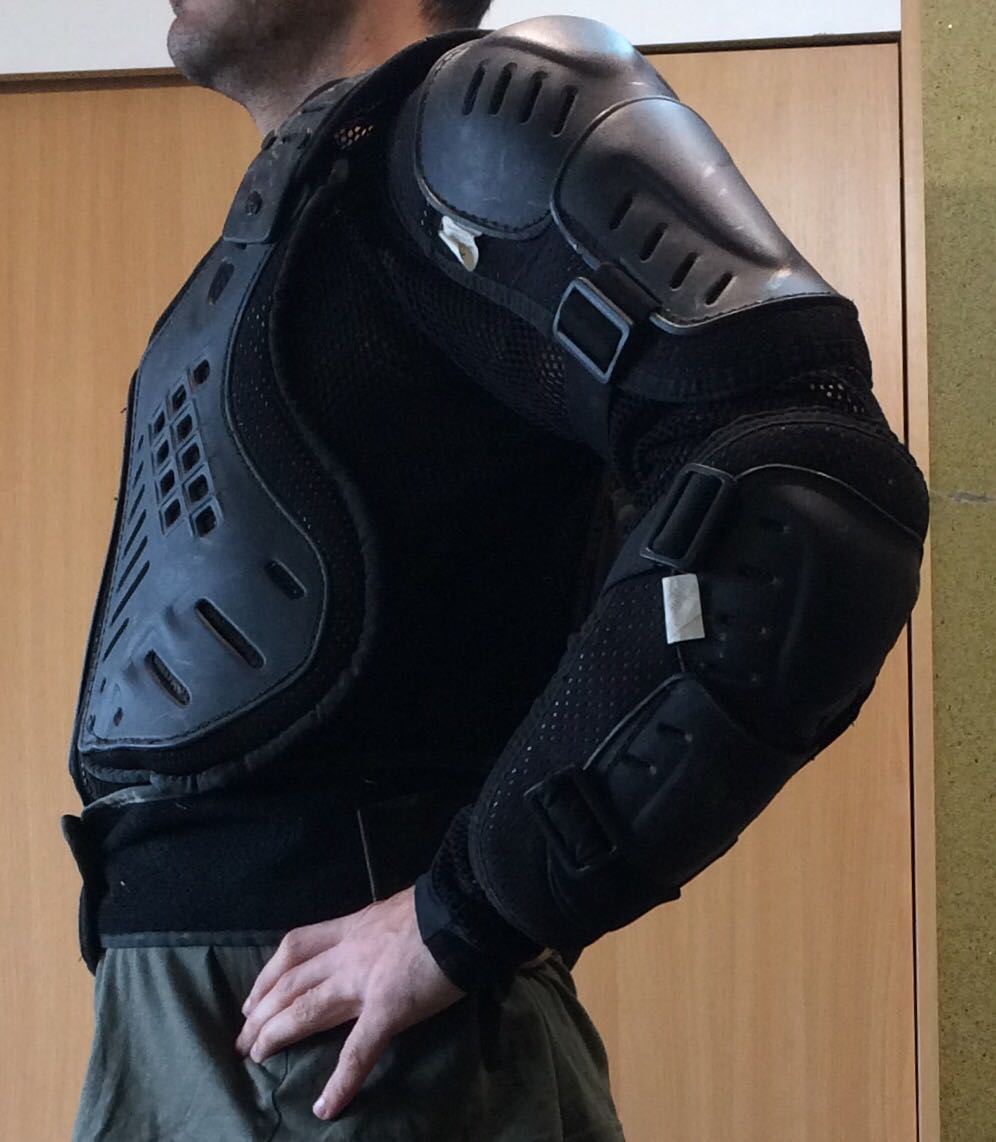 Armura moto enduro motocross. Are protectii rezistente spate, cot, umar, antebrat, piept, clavicula(detasabila), protectiile putand fi reglate datorita sistemului elastic de reglaj. Armura are brau reglabil. Plasa la armura este cu gauri mari pentru o ventilatie sporita. Fermoarul este rezistent. Armura este in stare buna, nu este chinezarie de slaba calitate. Este potrivita pentru o persoana inaltime 1,72-1,75, greutate 65-72kg. Pretul este fix. 200lei Transport in tara 23lei