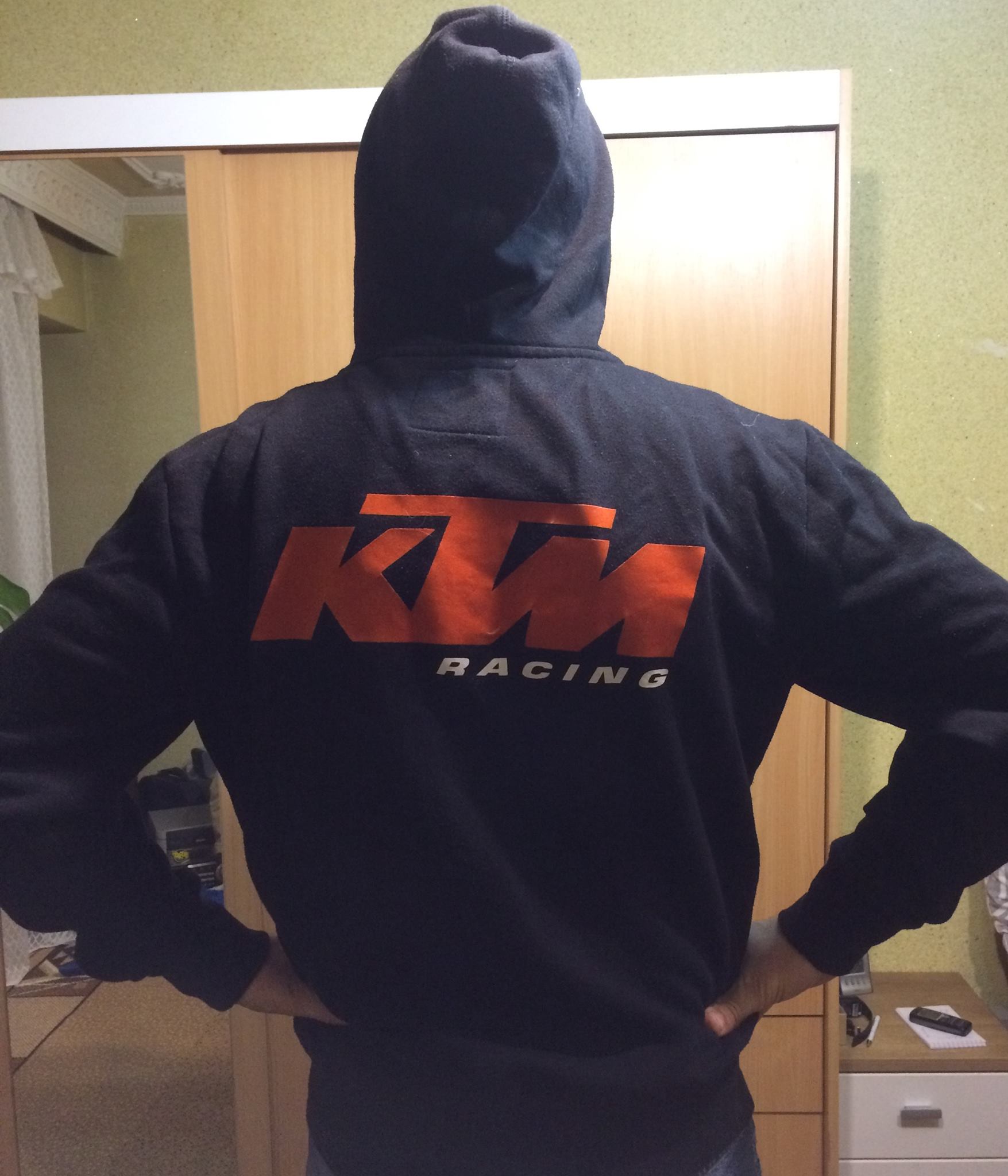 Hanorac casual negru, logo mare spate +logo mic fata KTM Racing, fermoar fata , 2 buzunare fata, gluga, marimea M/L aprox ~1.75 si 70kg. Se prezinta in stare foarte buna. Pret fix 80lei tel 0721 53 53 77